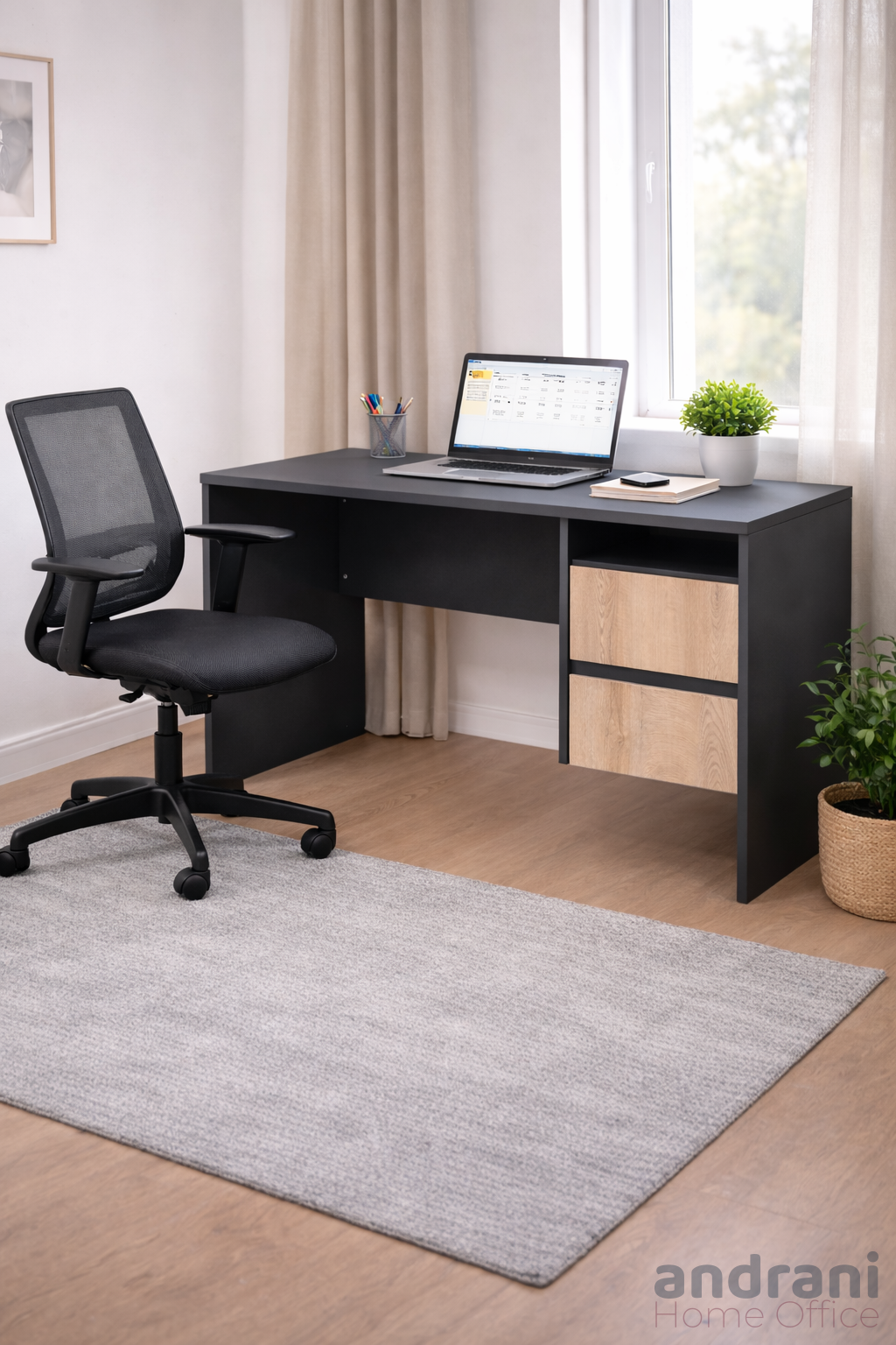 Questa scrivania da ufficio con 2 cassetti è un mobile versatile e pratico, progettato per un’organizzazione efficiente dello spazio di lavoro. I cassetti integrati offrono spazio sufficiente per documenti, cancelleria e accessori da ufficio, mantenendo il piano di lavoro pulito e ordinato.