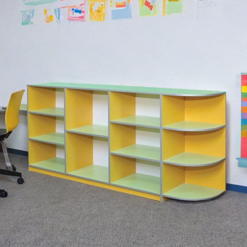 I ripiani nell'angolo sinistro sono arrotondati, garantendo maggiore sicurezza e un design a misura di bambino