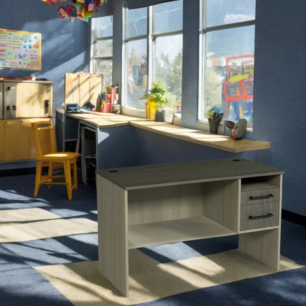Tavolo da ufficio, 1200x600x750 mm, 40,50 kg. Truciolare 18 mm, bordo ABS 1/0,5 mm. Assemblaggio sicuro e riutilizzabile. Fori passacavi con tappi. Utilizzabile singolarmente o in modo modulare. Colore: perla artigianale / rovere urbano marrone.