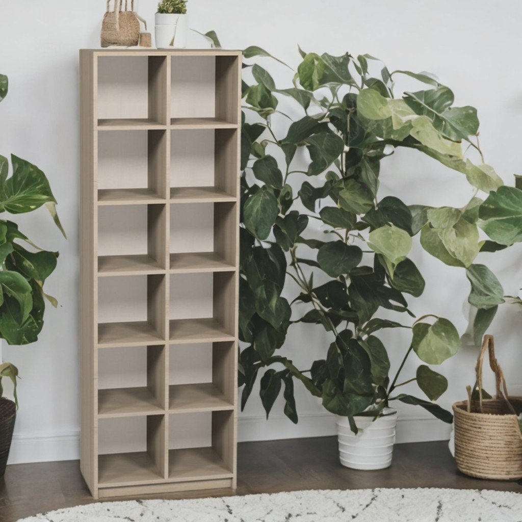 Dimensioni (L×P×A): 702×405×2115 mm. Peso: 76,44 kg. Mobile in truciolare melaminico da 18 mm con 6 ripiani aperti, alcuni regolabili in altezza. Colore: perla artigianale (ABS da 0,5 mm di colore). Schienale in HDF da 2,5 mm. Dotato di piedini metallici regolabili (0–30 mm) per pavimenti irregolari. Assemblato con fissaggi speciali e sicuri, progettato per il montaggio a parete.