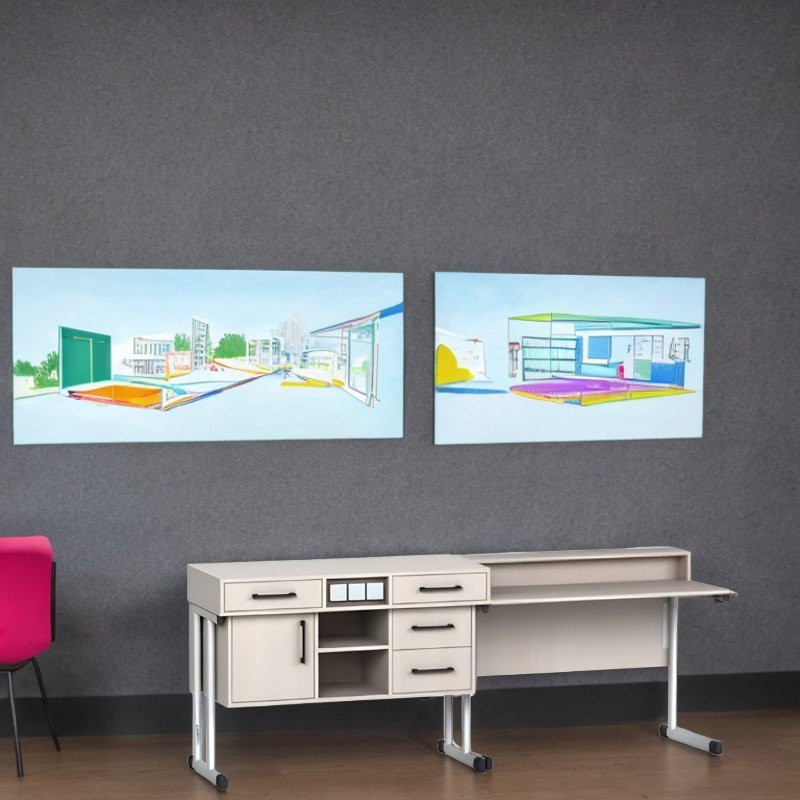 Set di tavoli dimostrativi per chimica e fisica; Dimensioni generali del set: 2400×600×900 mm; Il set include: tavolo a 3 prese, tavolo dimostrativo e tavolo per studenti; Tavolo dimostrativo a 3 prese - Dimensioni: 1200×600×900 mm, Peso: 36,96 kg, 2 cassetti su guide a sfere a estrazione completa, ripiano regolabile con anta chiusa, ripiano aperto, portacavi a 2 posizioni di montaggio, 3 prese incluse; Tavolo da laboratorio con una presa - dimensioni: 1200×600×900 mm, peso: 19,00 kg, piano con nicchia aperta, presa e portacavi montabili in 6 posizioni; Telai metallici realizzati con tubi 50x30x1,2 mm, 30x15x1,2 mm, 38x20x1,2 mm, verniciati elettrostaticamente, con coperture protettive in plastica; Truciolare nobilitato melaminico da 18 mm, bordatura in ABS: 1,0 mm per il piano, 0,5 mm per gli altri elementi; Colore truciolare: faggio, rovere chiaro, grigio; Colore telaio: verde (RAL 6018), grigio (RAL 7035); Optional: strato HPL per una maggiore resistenza (con sovrapprezzo).