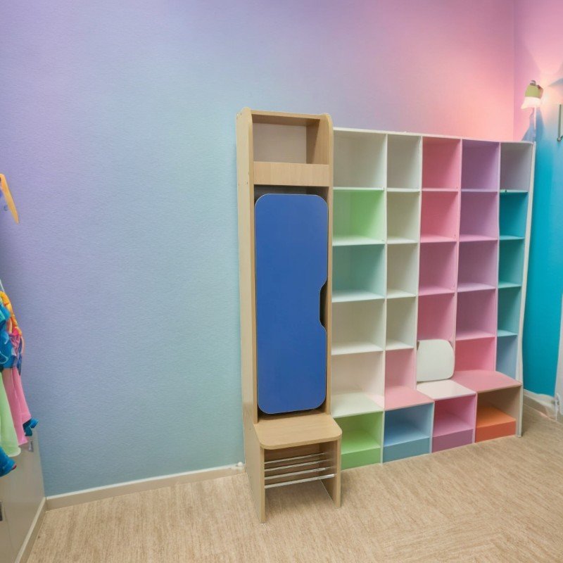La struttura è assemblata con elementi di fissaggio sicuri, fissata alla parete per una maggiore stabilità e dotata di guarnizioni in plastica resistente. Il telaio è in faggio e l'anta è disponibile in diverse tonalità allegre: giallo, verde lime, blu, arancione e rosso.