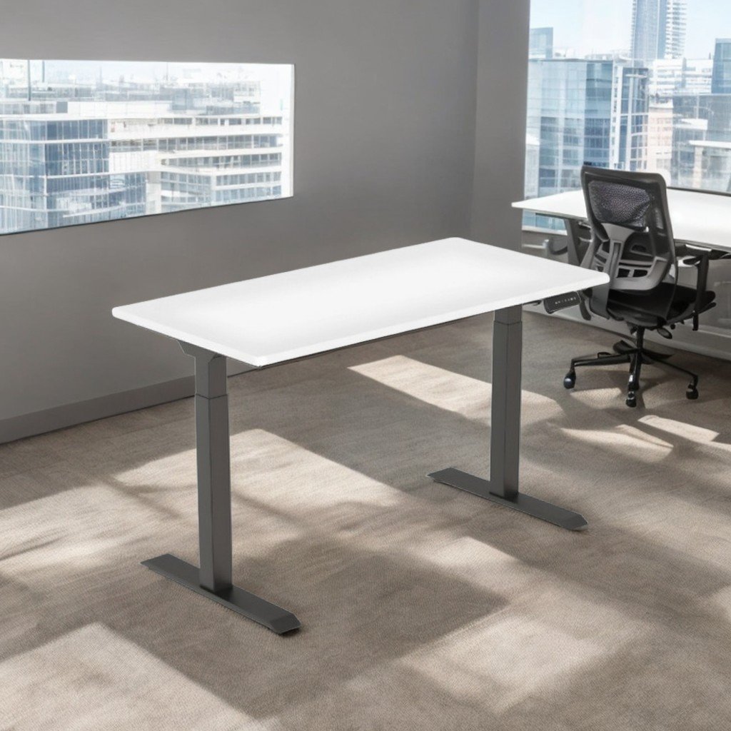 Tavolo regolabile 1400x700 mm, pannello truciolare 18 mm, telaio metallico SPCC con 2 motori. Altezza regolabile 690–1180 mm, larghezza telaio 850–1290 mm. Velocità 33 mm/s. Pannello con memoria. Portata 100 kg. Silenzioso (<50 dB). Garanzia 3 anni.